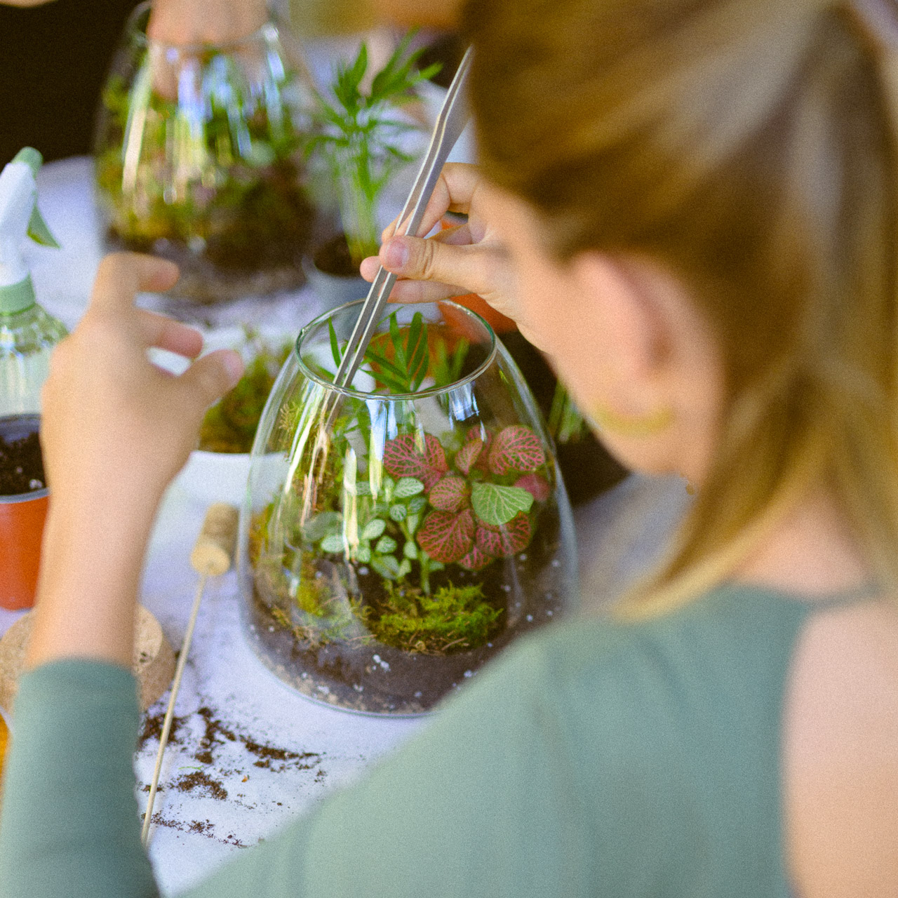 Un laboratorio botanico dove natura, creatività e collaborazione si intrecciano. Un momento rigenerante in cui si dà forma a un ecosistema in miniatura da portare con sé, simbolo di equilibrio, crescita e cura.